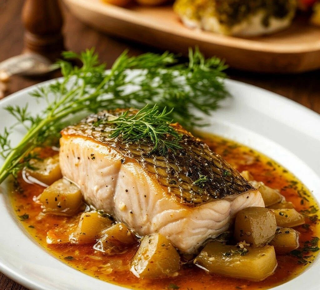 Осетр — благородная рыба с плотным белым мясом и деликатным вкусом, не требующим сложных маринадов или агрессивных специй. Лучше всего он раскрывается при запекании или тушении: в духовке, на пару или в фольге. Главное — не пересушить. Это отличное блюдо для ужина или праздничного стола, особенно если дополнить его свежей зеленью, лимоном и, конечно, черной икрой.